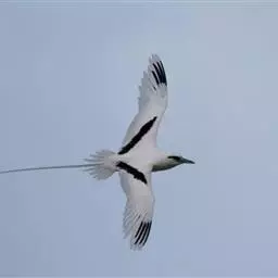 红尾鹲:头尾长960-1020厘米,休重600-830克。全身白色,配以红色长尾羽与朱色的嘴,…