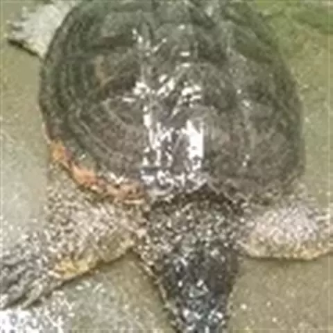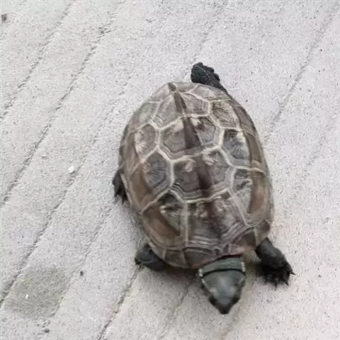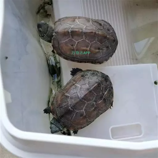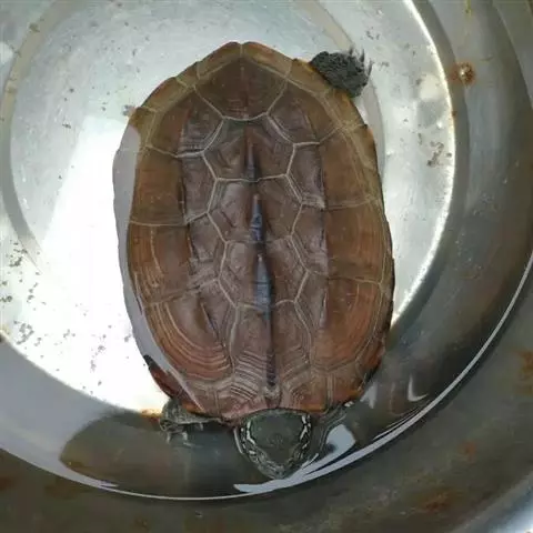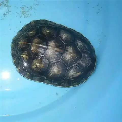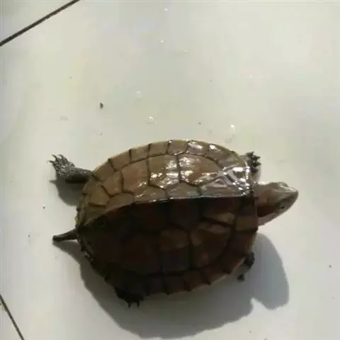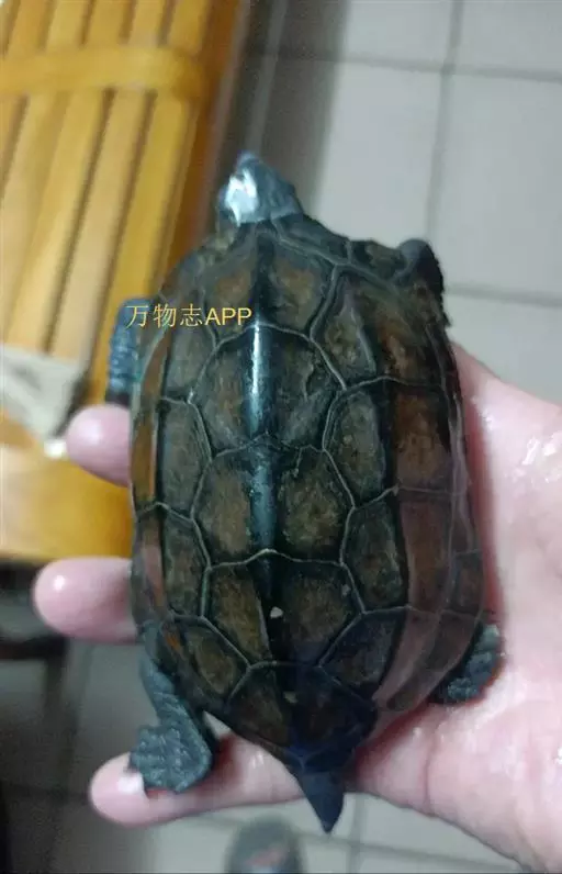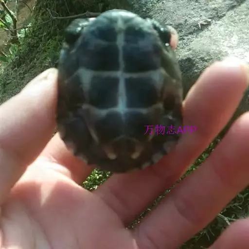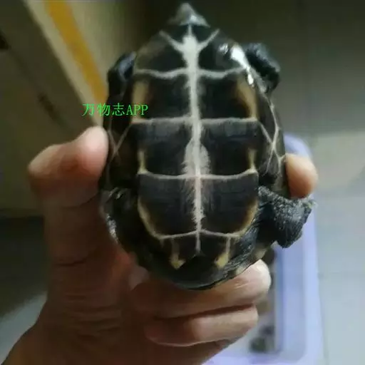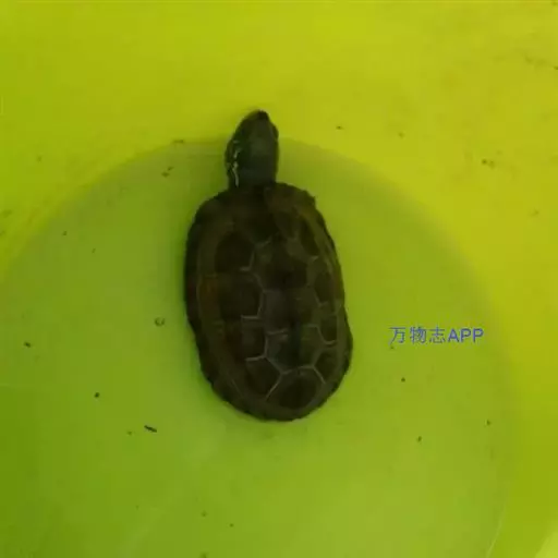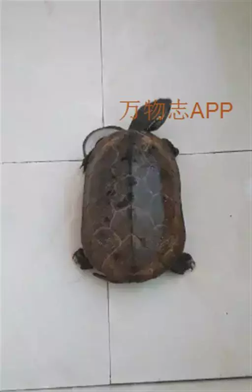 乌龟(学名:Mauremys reevesii)是龟科、拟水龟属爬行动物。头小,不及背甲宽的1/4,头顶前部平滑,后部皮肤具细粒状鳞;吻端向内侧下斜切,喙缘的角质鞘较薄;下颚左右齿骨间的交角小于90°。背甲较平扁,具3条纵棱,四肢略扁平,指、趾间均具蹼,具爪。尾较短小。背甲棕褐色,腹甲及甲桥棕黄色,每一盾片均有黑褐色大斑。头部橄榄色或黑褐色;头侧及咽部有喑色镶边的黄纹及黄斑,并向后延伸至颈部。雄性个体几乎整个呈黑色,有异臭,雌龟背甲棕褐色。