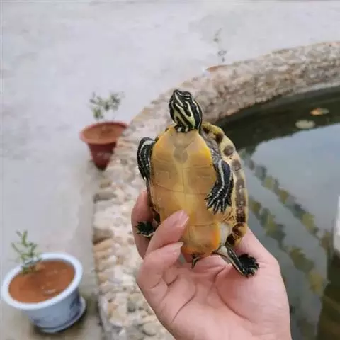 喂食小鱼、小虾、螺丝、生瘦肉等有营养的食物。小龟要把生的小鱼、小虾等切细后喂。不能喂熟的瘦肉、肥肉及不易消化的食物,否则会消化不良,要生病的。乌龟一年有二个时期:一是生长期,温度15℃以上,大约在5-10月份,从乌龟开始进食到停止进食这个时期叫乌龟生长的时间。这段时间它需要晒太阳,所以前面讲到塘的中央要乱石、土墩、绿地。这段时间换水要勤,一周换一次。二是冬眠期,大约在11月份-翌年4月份,温度在15℃以下,逐渐停止进食,就开始进入冬眠期了。冬眠时也不能离开水,否则就会失水生病而死。进入冬眠期塘温不宜太高,0-5℃,这样乌龟就不太活动,减少消耗体能。如果温度太高,乌龟一直在活动,大量消耗体能。这段时间乌龟也需要晒太阳,塘温不能太低,冰冻时水可以加深点。换水可以尽可能少些,甚至不换。