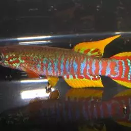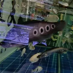说明:生活在水族箱的中、上层,性情凶暴而生性胆怯,避免惊扰。水底可放些鹅卵石或雨花石,一般性成熟7年,择偶性极强。