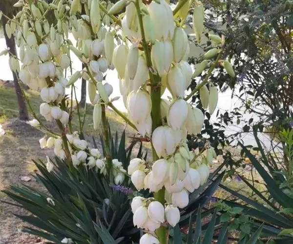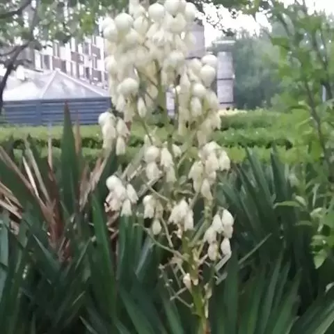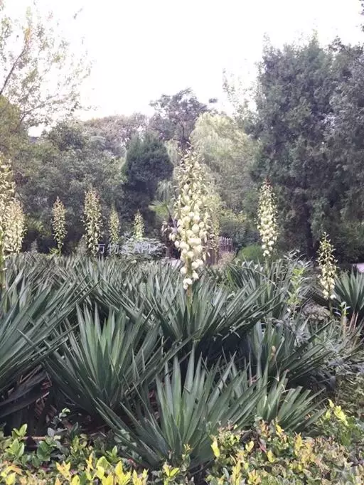 抗性强,适应性广,四季常青,观赏价值高,是园林绿化的重要树种。丝兰叶姿刚劲有力,常年浓绿 丝兰园林 色,夏秋间开花,花期长,花序圆锥形,高出叶丛,显得高大挺拔,一串串乳白色如杯状的花朵,后变微黄,上缀下垂,互相簇拥,亮丽秀美。丝兰数株成丛,高低不一,剑形叶放射状排列整齐,适于庭园、公园、花坛中孤植或丛植,常栽在花坛中心、庭前、路边、岩石、台坡,也可和其它花卉配植。
