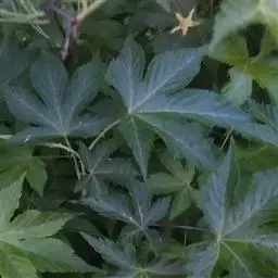 叶大,聚生于茎顶端,近盾形,直径可达60厘米,通常5-9深裂,每裂片再为羽状分裂;叶柄中空,长达60-100厘米。