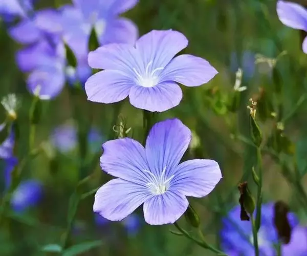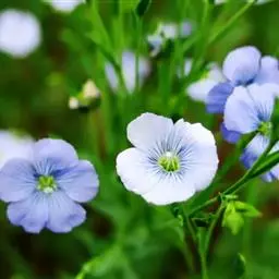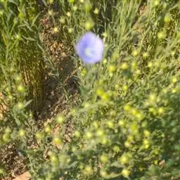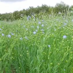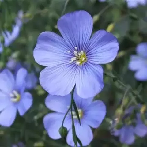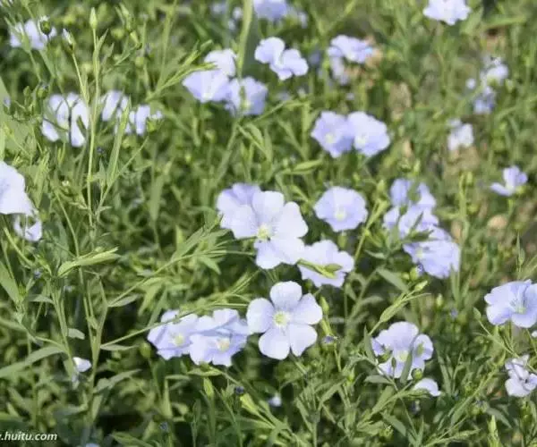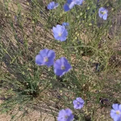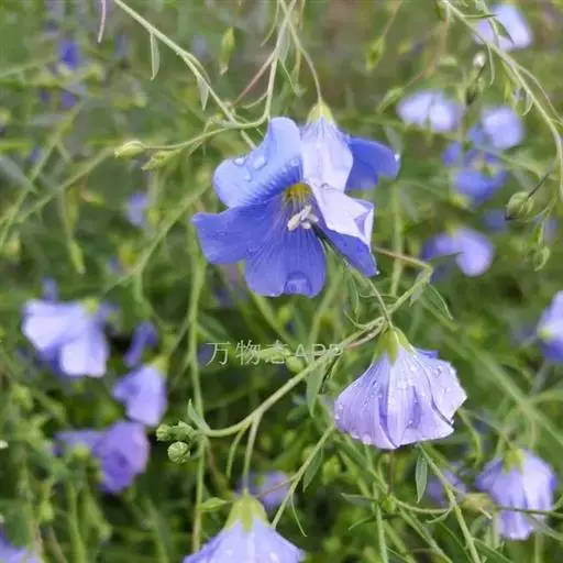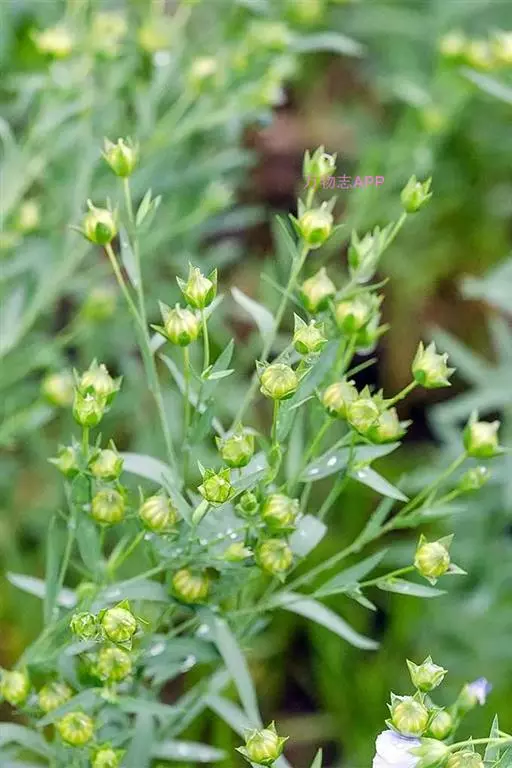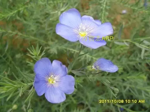 亚麻(学名:Linum usitatissimum L. ):是一年生草本植物,可分成纤维用亚麻、油用亚麻和油纤兼用亚麻三种类型。茎直立,可达1.2米高,上部细软,有蜡质;叶互生,披针状,20-40毫米长,3毫米宽,表面有白霜;花的花瓣5,直径为15-25毫米,蓝色或白色;果实为蒴果,种子扁卵圆形,喜凉爽湿润气候。
