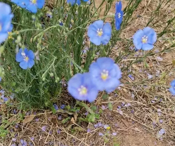 花单生于枝顶或枝的上部叶腋,组成疏散的聚伞花序;花直径15-20毫米;花梗长1-3厘米,直立;萼片5,卵形或卵状披针形,长约5-8毫米,先端凸尖或长尖,有3(5)脉;中央一脉明显凸起,边缘膜质,无腺点,全缘,有时上部有锯齿,宿存;花瓣5,倒卵形,长8-12毫米,蓝色或紫蓝色,稀白色或红色,先端啮蚀状;雄蕊5枚,花丝基部合生;退化雄蕊5枚,钻状;子房5室,花柱5枚,分离,柱头比花柱微粗,细线状或棒状,长于或几等于雄蕊。