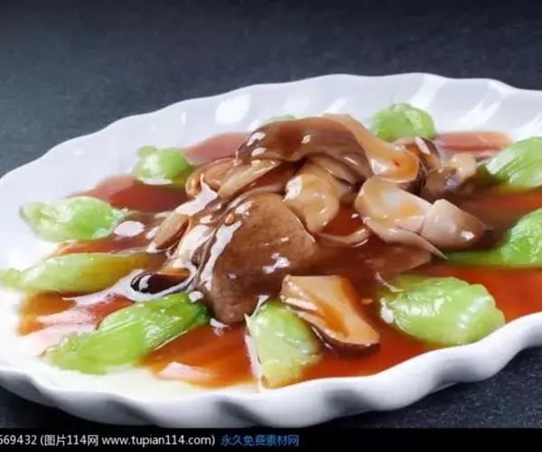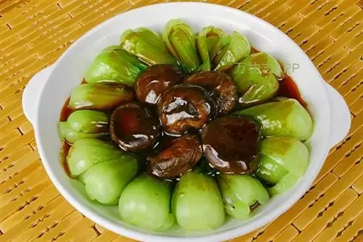 4. 用筷子将菜心捞出,整齐地摆在盘内,再将草菇倒入烧菜心的汤内烧透;