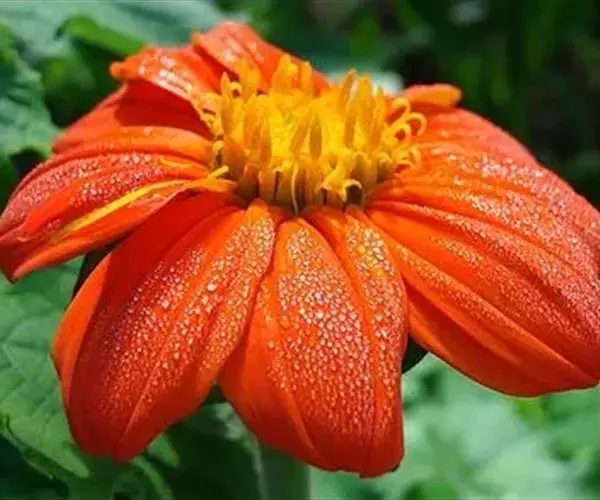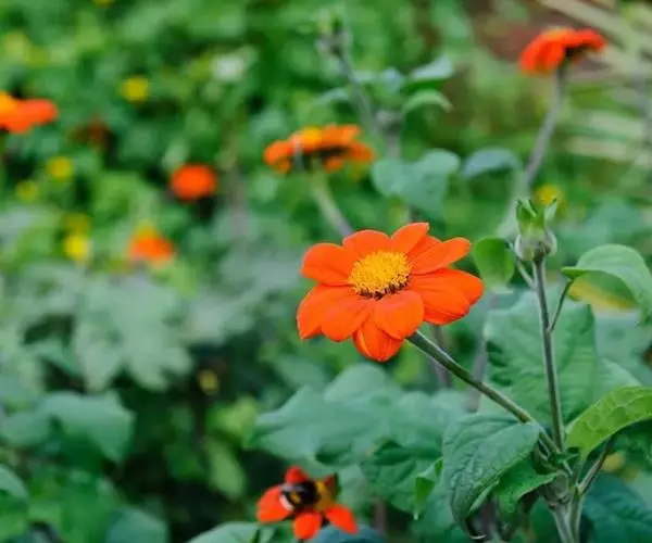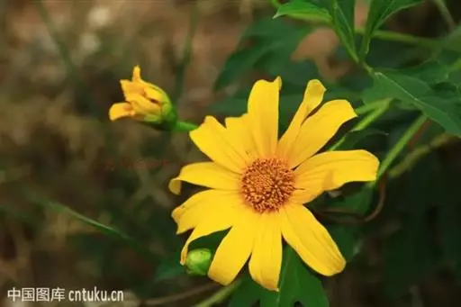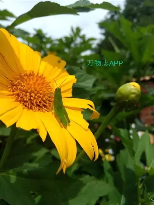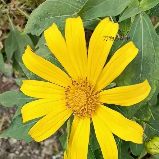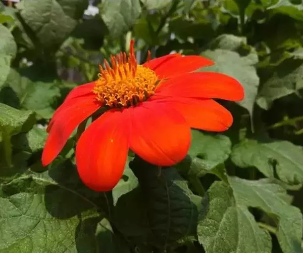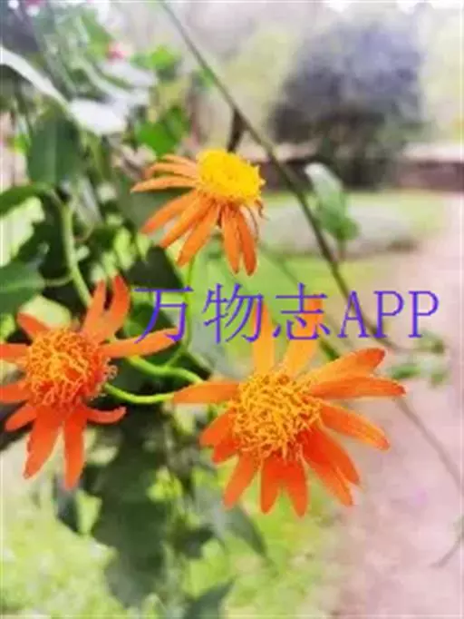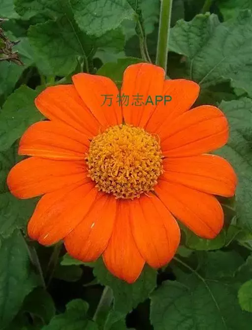 肿柄菊(学名:Tithonia diversifolia A. Gray)菊科肿柄菊属植物,一年生草本,高2-5米。叶卵形或卵状三角形或近圆形,头状花序大,顶生于假轴分枝的长花序梗上,总苞片4层,外层椭圆形或椭圆状披针形,花果期9-11月。