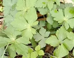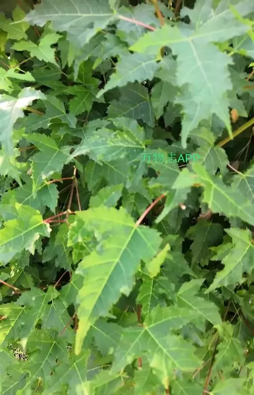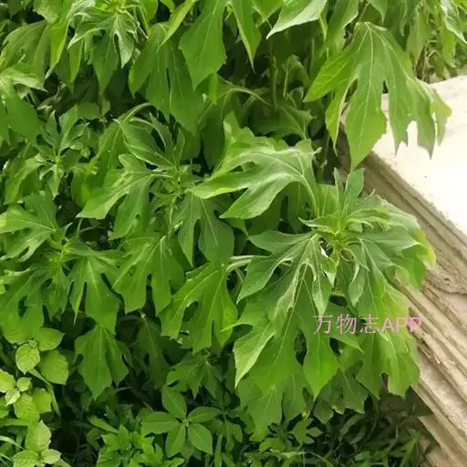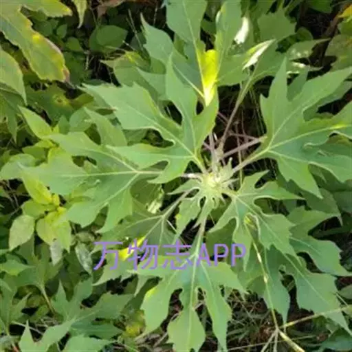 叶卵形或卵状三角形或近圆形,长7-20厘米,3-5深裂,有长叶柄,上部的叶有时不分裂,裂片卵形或披针形,边缘有细锯齿,下面被尖状短柔毛,沿脉的毛较密,基出三脉。