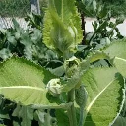 一年生草本,高2-5米。茎直立,有粗壮的分枝,被稠密的短柔毛或通常下部脱毛。
