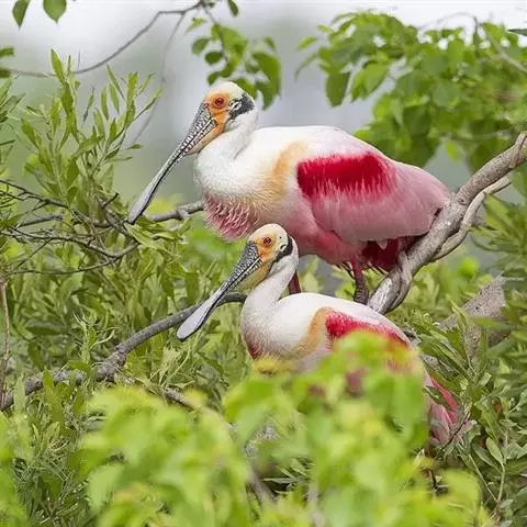 粉红琵鹭:体高87厘米,翼展127厘米,体重1300克,寿命10年。是一种大型涉禽。脚很长,喙长而…