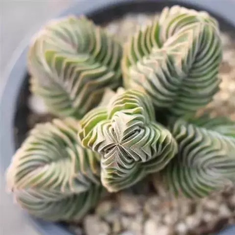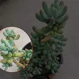 蓝黛莲是一种景天科厚叶草属植物。叶片呈略扁的圆柱形,排列成莲座状;颜色为灰绿色,…