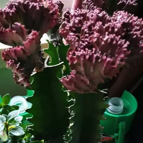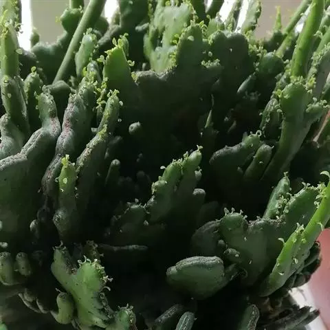 魁伟玉原产南非,是一种大戟科的多年生肉质植物,植株具粗圆筒形肉质茎,有10条以上的突出棱,…