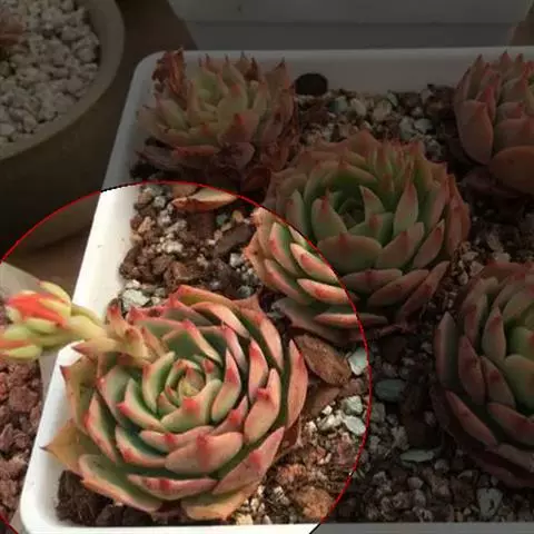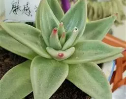 女雏是景天科石莲花属的多肉植物。特征是小巧的株形和橙粉色叶缘。极易生侧芽,…