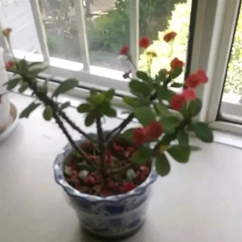 虎刺梅:别称铁海棠,是蔓生灌木植物。茎多分枝,长60-100厘米,直径5-10毫米,具纵棱,密生硬…
