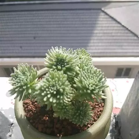 薄雪万年草别名矶小松,景天科景天属多年生草本植物,其细小的蓝绿色棒状叶片环绕生长于茎端,…
