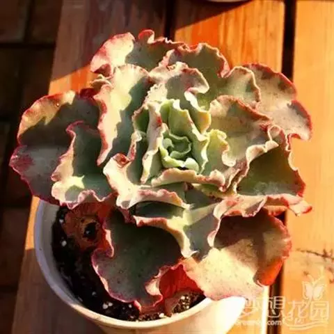 高砂之翁是景天科,拟石莲花属的多肉植物。特征是其边缘呈大波浪卷形的宽大叶片,…