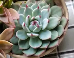 吉娃莲,景天科拟石莲花属,别名:吉娃娃,吉娃莲,植株小型,无茎的莲座叶盘非常紧凑。卵形叶较厚,带小尖,…