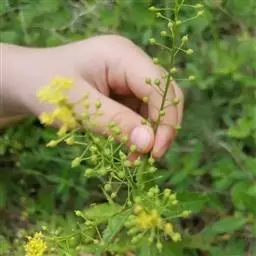 舌状花和管状花同生于一个花序,黄色,典型的菊科头状花序,着生于枝顶,花序直径0.6~1厘米,花梗长0.5厘米。