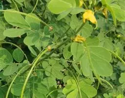 荚果线状长椭圆形,顶端有短尖,基部渐狭成一明显的柄,长6-11厘米,宽12-16毫米,被紧贴、稀疏柔毛,仅腹缝有翅,翅宽约2毫米,有种子1-8粒;种子长约6毫米,宽约4毫米。花期6-7月,果期9月至翌年1月。