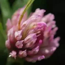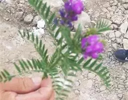 总状花序单生于叶腋,长于复叶;花序轴被黄色微柔毛,花3-10朵聚生,花束的总轴延伸成一有节、长2-4毫米的小枝;花长10-12毫米;花梗丝状,长4-5毫米,紧贴黄色柔毛,顶端有被黄色柔毛的小苞片2枚;花萼杯状,长宽各3-4毫米,外面密被黄色柔毛,萼齿小,不等大;花冠红白色,旗瓣椭圆状卵形,先端2浅裂,基部截状微心形,沿背脉上疏被微柔毛或无毛,翼瓣和龙骨瓣一侧有稍钝的耳;雄蕊单体,不等长;花盘杯状,浅裂;子房被长柔毛,有胚珠多粒。