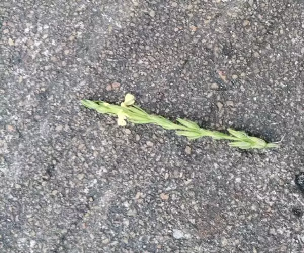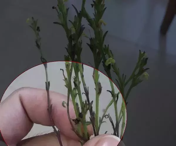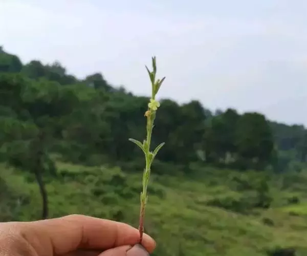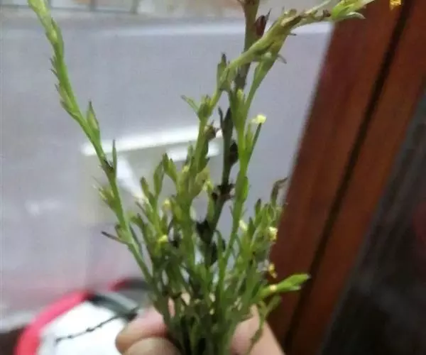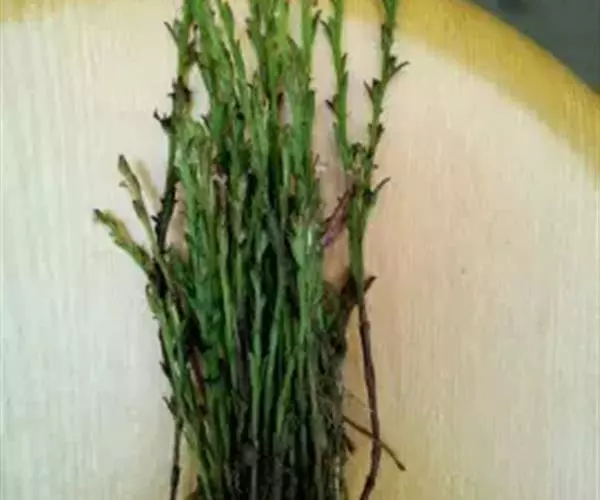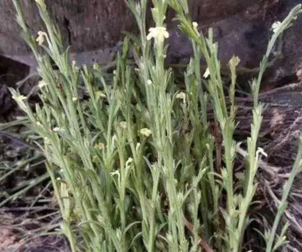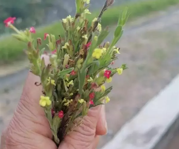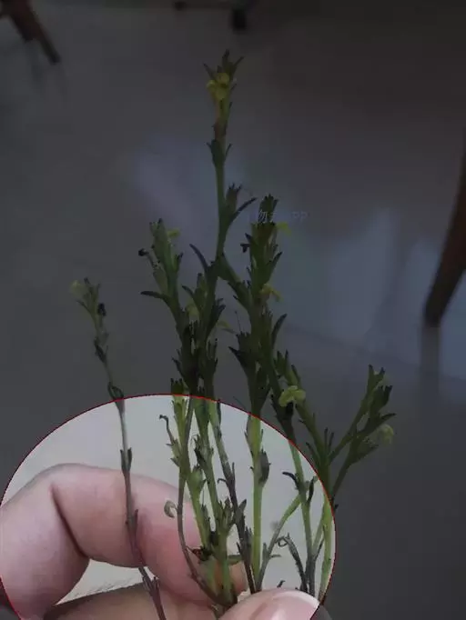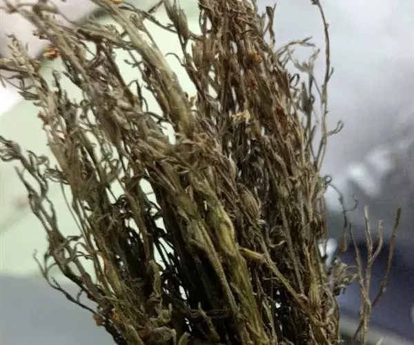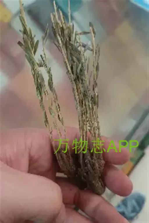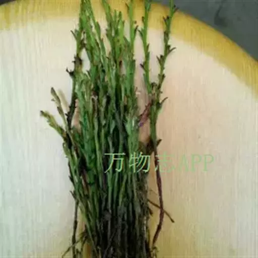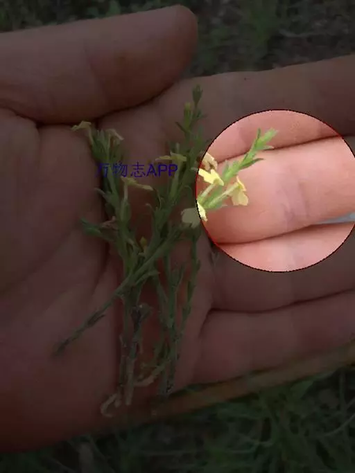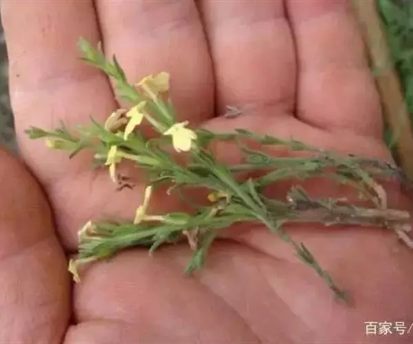 为一年生小草本,半寄生,高6~25厘米,全株粗糙,且被硬毛;茎多呈四方形,有2条纵沟,不分枝或在基部略有分枝。叶生于下部的对生,上部的互生,无柄,叶片线形或狭卵形,长5~12毫米,宽1~2毫米,但最下部的叶常退化成鳞片状。茎单一或间有下部分枝,纤细,长3~15厘米,灰褐色,被粗糙短毛,茎部生稀疏微细须根,质稍柔韧。叶小,互生,线形或披针形,上部叶较大,长4~10毫米左右,常贴生于茎上,下部叶小,鳞片状。花黄色或紫色,腋生或排成稀疏穗状花序;苞片明显,长于萼;气无,味淡。以色灰黑、柔嫩、带花穗者为佳。气无,味淡。