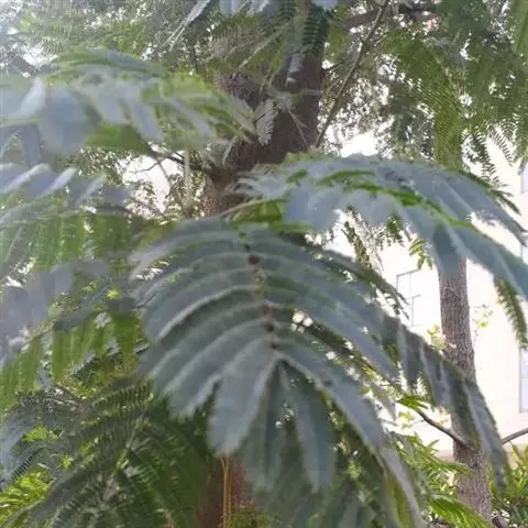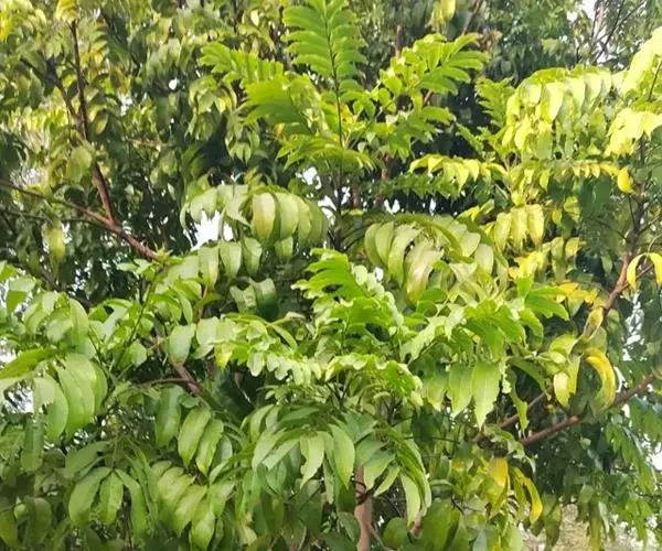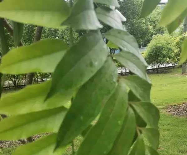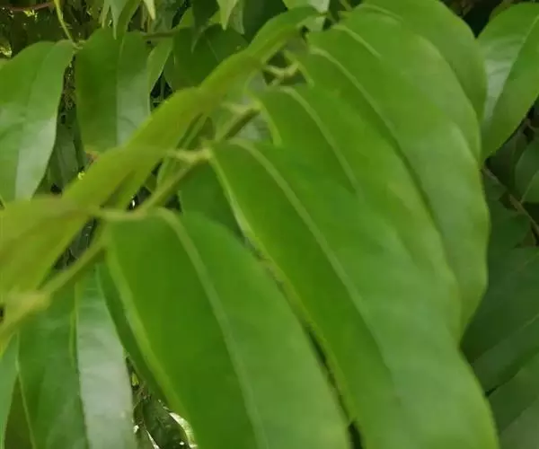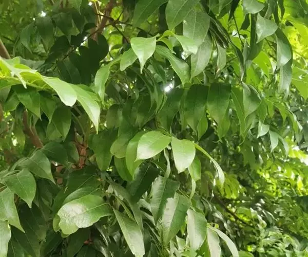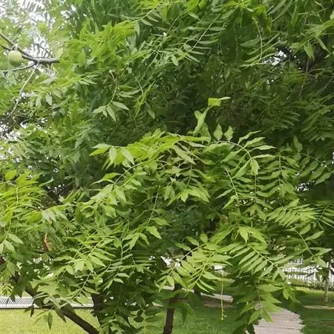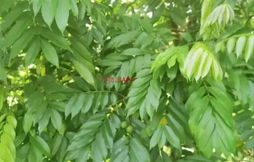 常绿大乔木,高达20余米;幼枝具条纹,被灰色绒毛。奇数羽状复叶长30-45厘米,有小叶5-7对,叶轴和叶柄具条纹,疏披毛;小叶互生,近革质,长圆形,自下而上逐渐增大,长5-14.5厘米,宽2.5-4.5厘米, 先端渐尖,基部常偏斜,阔楔形至近圆形,全缘,两面沿中脉疏被微柔毛,叶背脉腋具灰白色髯毛,侧脉8-9对,近边缘处弧形上升,侧脉和细脉两面突起;小叶柄短,长2-5毫米。