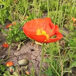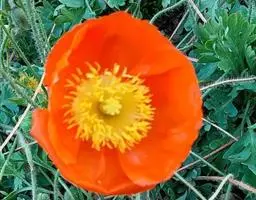 野罂粟 Banfi, Bartolucci, J.-M.Tison & Galasso)是罂粟科、高山罂粟属多年生草本植物。株高20-50厘米,具乳汁,全体被粗毛。叶生基生,具长柄;叶片轮廓卵形或长卵形、狭卵形或披针形,先端钝圆,两面疏生微硬毛。花单独顶生。萼片2,广卵形,被棕灰色硬毛,花开后脱落。花瓣4,桔黄色,倒卵形至宽倒卵形,具微波状缺刻。雄蕊多数,花丝丝状;子房具棱,柱头5-9裂。蒴果,狭倒卵形,密被视而长的硬毛,顶孔开裂。种子细小,多数。花期6-7月,果期8月。生于海拔580-3500米的林下、林缘、山坡草地。两半球的北极区及中亚和北美等地有分布。原产地俄罗斯;引入阿拉斯加、格陵兰岛和中国多地。