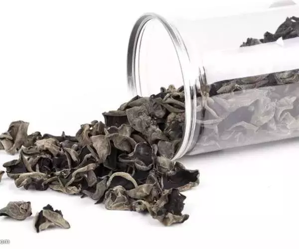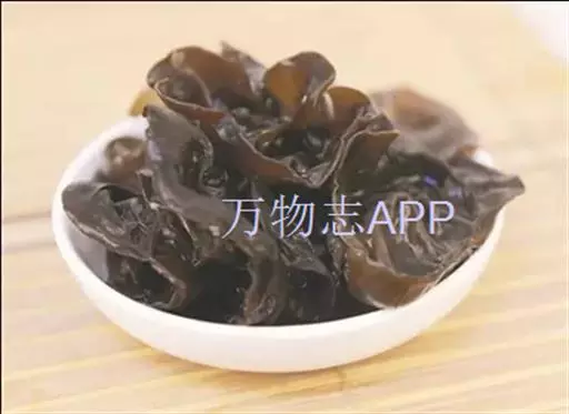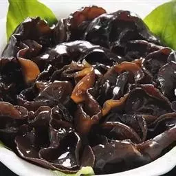 黑木耳子实体胶质,成圆盘形,耳形不规则形,直径3-12厘米。新鲜时软,干后成角质。口感细嫩,风味特殊,是一种营养丰富的著名食用菌。100克干黑木耳中水分10.9克、蛋白质10.6克、脂肪0.2克、碳水化合物65.5克、热量306千卡、粗纤维7.0 克、灰分5.8克、钙357毫克、磷201毫克、铁185毫克、胡萝卜素0.03毫克、硫胺素0.15毫克、核黄素0.55毫克、烟碱酸2.7毫克和多重矿物质。水发木耳蛋白质极低,百克含1.5克。有益气、充饥、轻身强智、止血止痛、补血活血等功效。富含多糖胶体,有良好的清滑作用,是矿山工人、纺织工人的重要保健食品。还具有一定的抗癌和治疗心血管疾病功能等等。