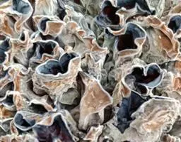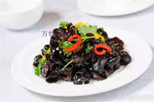 干燥后收缩为角质状,硬而脆性,背面暗灰色或灰白色;入水后膨胀,可恢复原状,柔软而半透明,表面附有滑润的粘液。质地柔软,味道鲜美,营养丰富,可素可荤,不但为菜肴大添风采,而且能养血驻颜,祛病延年。现代营养学家盛赞黑木耳为“素中之荤”,其营养价值可与动物性食物相媲美。