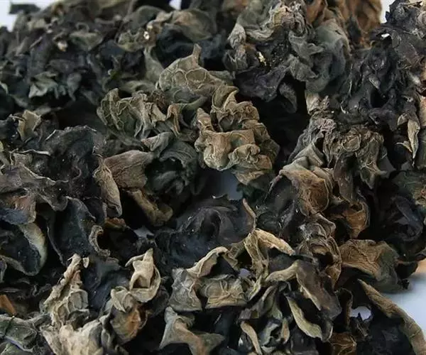 耳片乌黑光润,背面呈灰白色,片大均匀,耳瓣舒展,体轻干燥,半透明,胀性好,无杂质,有清香气味。质量好的干木耳,0.5千克能胀发5千克左右。