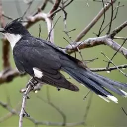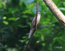 大杜鹃:是普通杜鹃的中国亚种。体长约320毫米,翅长约210毫米。雄鸟上体纯暗灰色;两翅暗褐,翅缘…