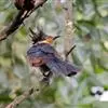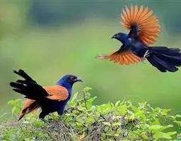 红翅凤头鹃:体长约38厘米,顶冠及凤头黑色,具显眼的直立凤头,背及尾黑色而带蓝色光泽,翅栗红色,…