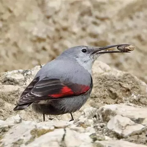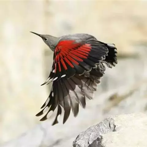 红翅旋壁雀:体重15-23克,体长120-178毫米。是一种体型略小的鸟类。尾短而嘴长,…