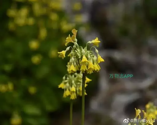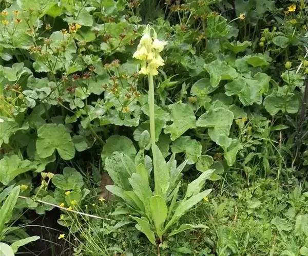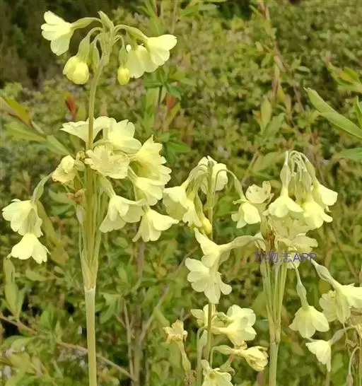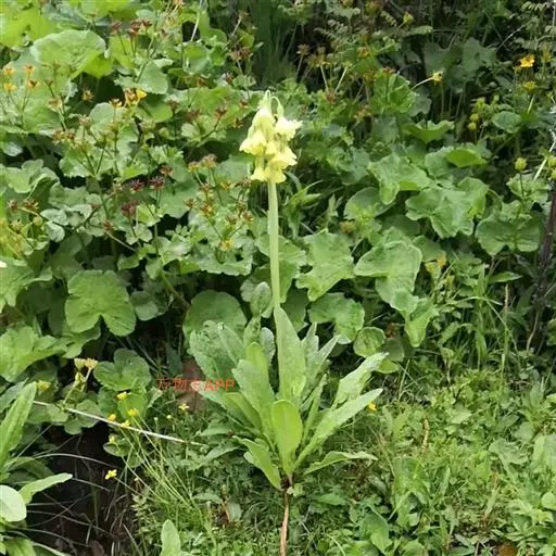 钟花报春(学名:Primula sikkimensis Hook. f.):报春花科、报春花属多年生草本植物。根状茎粗短,多数纤维状须根。叶片椭圆形至矩圆形或倒披针形,先端圆形或有时稍锐尖,上面深绿色,下面淡绿色,中肋宽扁,网脉极纤细;叶柄甚短。花葶稍粗壮,顶端被黄粉;伞形花序,多花,苞片披针形或线状披针形,花萼钟状或狭钟状,裂片披针形或三角状披针形,花冠黄色,乳白色,蒴果长圆体状,6月开花,9-10月结果。