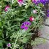 细叶美女樱具有匍匐茎,枝条柔软,枝叶纤细、花朵致密,宜于在各类栽植器中做多种造型,既可用于美化街道及各种建筑物,又适于家庭悬挂,装扮居室,是一种花叶共赏的新型垂带植物。