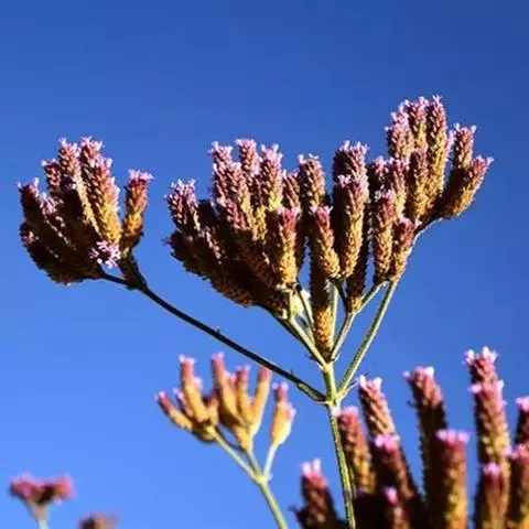 茎基部稍木质化,甸甸生长, 节部生根。株高20一3 0厘米, 枝条细长四棱, 微生毛。叶对生, 二回羽状深裂,裂片线性, 两面疏生短硬毛, 端尖, 全缘, 叶有短柄。穗状花序顶生,开花呈碎状花序顶生短缩呈伞房状,多数小花密集排列其上,花冠筒状,花色丰富,有白、粉红、玫瑰红、大红、紫、蓝等色,花期4-10月,经久不败。