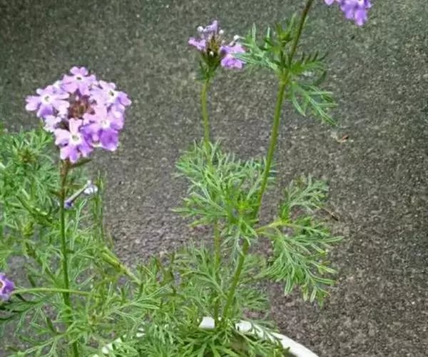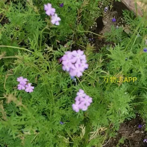 细叶美女樱(Verbena tenera Spreng.):也称羽叶马鞭草,马鞭草科马鞭草属一种多年生草本花卉,也可作一二年生栽培,原产于巴西、秘鲁和乌拉圭等美洲热带地区。
