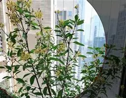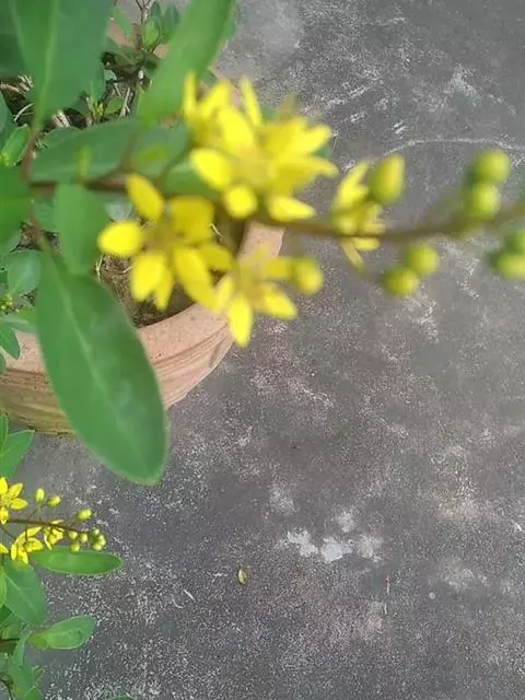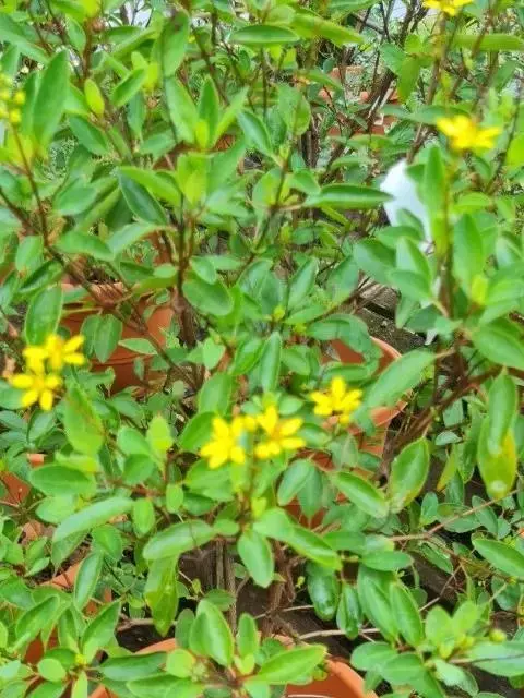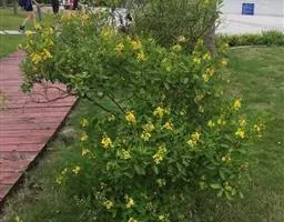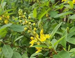 金英常绿灌木,株高约50-160厘米,嫩茎红色。叶片绿色,对生,椭圆形,先端尖,基部楔形,全缘。…