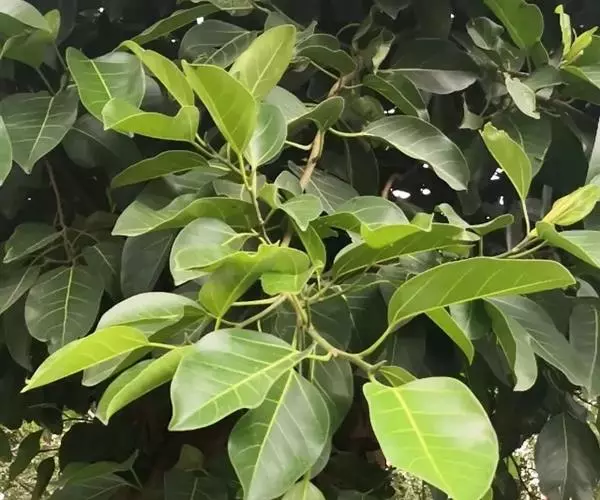 花叶高山榕叶片上散布黄色斑块,色彩艳丽,抗风和抗大气污染,适用行道景观树种。