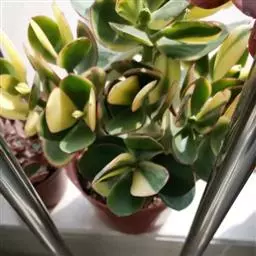 仙人之舞,学名是Kalanchoe orgyalis,科属为景天科伽蓝菜属。野外分布于马达加斯加南部及西南部。叶卵形,有光泽和质感;叶面近铜色,叶背面呈银色。有些品种叶面橘红色有短绒毛,叶背常规为绿色。
