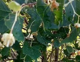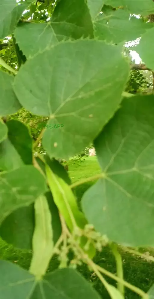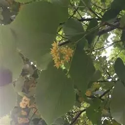 椴树(Tilia tuan Szyszyl.),别名:火绳树、家鹤儿、金桐力树、桐麻、叶上果、叶上果根,为椴树科、椴树属的植物,是中国珍贵的重点保护植物。高20米;树皮灰色,直裂;小枝近秃净,顶芽无毛或有微毛,叶宽卵形,聚伞花序长,无柄,萼片长圆状披针形,果球形,花期7月。 分布于北温带和亚热带。 有经济、食用、医用等多种价值。毛芽椴是其变种。
