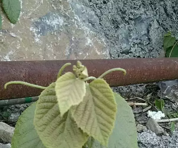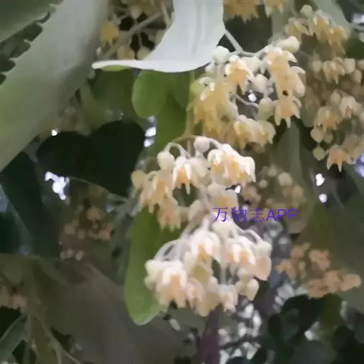 嫩枝及顶芽有茸毛;叶阔卵形,长10-12厘米,宽7-10厘米,下面有灰色星状茸毛,边缘有明显锯齿;花序有花16-22朵;苞片长8-12厘米,无柄。果实球形。