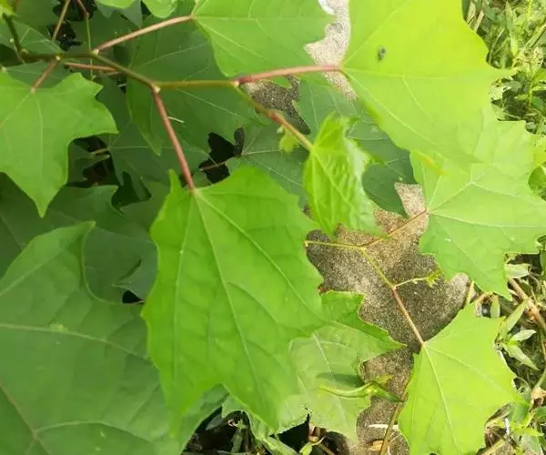与八角枫相近,但叶片通常明显3~5裂,稀7裂,基部心形,下面有疏毛,花常直至数朵组成腋生聚伞花序以示区别。
