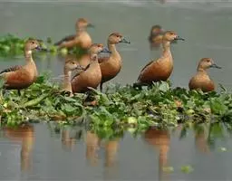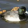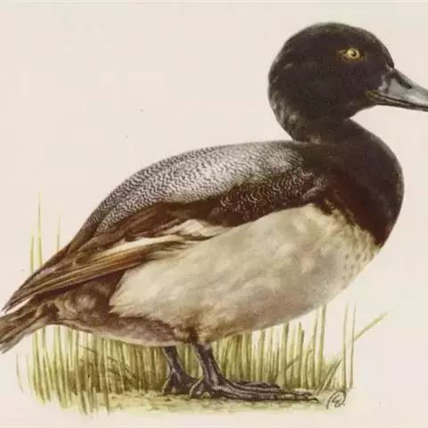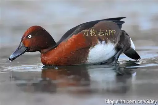 白眼潜鸭(学名:Aythya nyroca)属中型潜鸭,个体比红头潜鸭小,和凤头潜鸭差不多。体长33-43厘米,体重0.5千克以上不到1千克。雄鸟头、颈、胸暗栗色,颈基部有一不明显的黑褐色领环;眼白色,上体暗褐色,上腹和尾下覆羽白色,翼镜和翼下覆羽亦为白色,两胁红褐色,肛区两侧黑色。雌鸟与雄鸟基本相似,但色较暗些。在水中时腹部白色虽不可见,但头、颈、胸和两胁的暗栗色,以及肛区两侧的黑色和尾下白色形成明显对照。飞翔时腹中部和翅上翅下白斑与暗色体羽亦形成强烈对比,反差强烈,杂食性,主要以水生植物和鱼虾贝壳类为食。栖居于沼泽及淡水湖泊。冬季也活动于河口及沿海泻湖。怯生谨慎,成对或成小群。繁殖在德国、匈牙利、波兰、西班牙、希腊、摩洛哥等欧洲中部、南部和地中海沿岸国家,往东到土耳其、克什米尔、伊朗、外高加索,一直到西伯利亚西南部;越冬在缅甸、印度北部和中部、孟加拉国、伊拉克、伊朗南部、埃及和地中海沿岸。