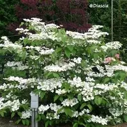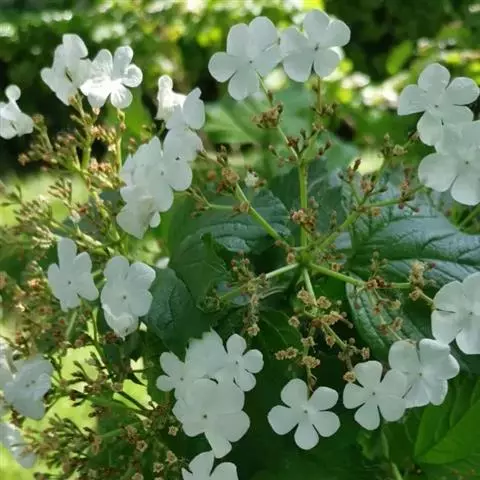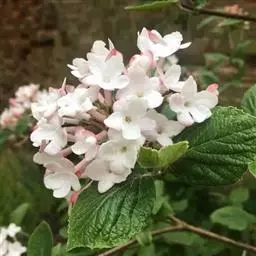 地中海荚蒾冠形优美,花蕾殷红,花开时满树繁花,一片雪白,因而也可孤植或群植,用作树球或庭院树。