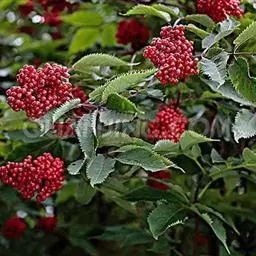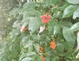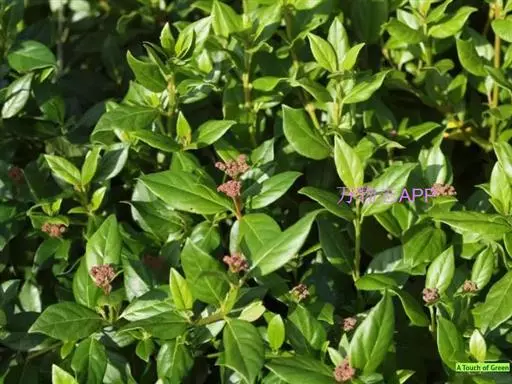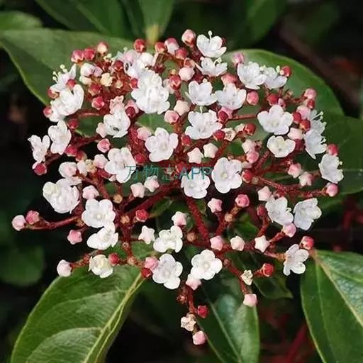 常绿灌木,树冠呈球形,冠径可达2.5一3米。叶椭圆形,深绿色,叶长10厘米,聚伞花序,单花小,仅0.6厘米,花蕾粉红色,花蕾绷很长,可达5个多月,盛开后花白色,整个花序直径达10厘米,花期在原产地从11月直到翌存4月。10月初便可见细小的黄绿色花蕾,随着花序的伸长,花蕾越来越密集覆盖于枝顶,颜色也逐步加深呈殷红色,远远望去像一片片红云,飘浮在墨绿色的树冠上,果卵形,深蓝黑色,径0.6厘米。