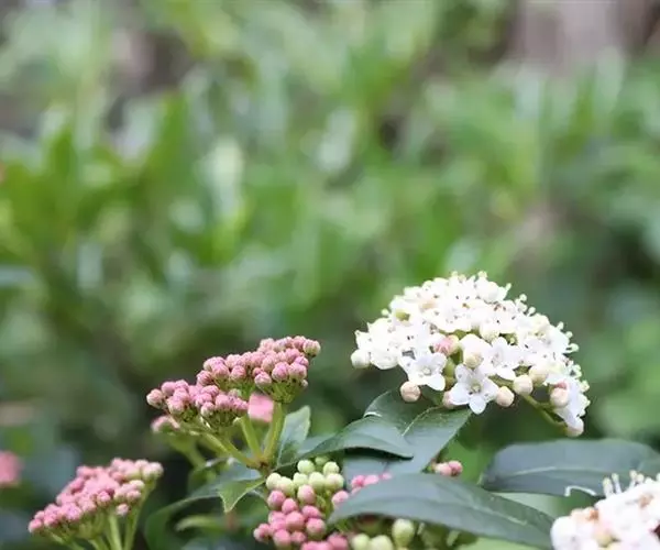 地中海荚蒾为忍冬科常绿灌木,多分枝,聚伞花序,花蕾粉红色,于秋季显蕾,直至第2年春季才开花,花白色,冬、春季都有其特殊的观赏特色。枝叶繁茂,耐修剪,其整形可参照夹竹桃,养护修剪以疏剪为主,宜在春末花后进行。