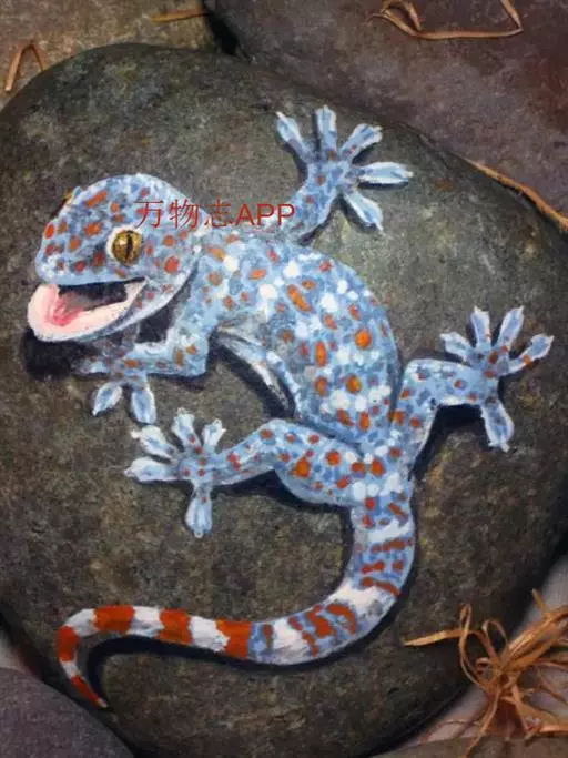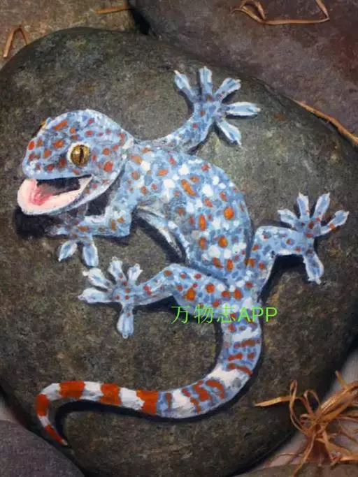 大壁虎(学名:Gekko gecko):俗称蛤蚧(gé jiè)、又称仙蟾,台湾称为大守宫。体型较大,体长可达30厘米以上,头长大于尾长。背腹面略扁,头呈扁平三角形;皮肤粗糙,全身密生粒状细鳞;体色有深灰色、灰蓝色、青黑色等,头、背部有深灰、蓝褐等颜色横条纹,全身散布灰白色、砖红色、紫灰色、橘黄色斑点,尾有白色环纹。吻鳞不接鼻孔。背部粒鳞间散布的疣鳞约12-14纵列。指、趾间微蹼。尾基每侧肛疣1个或2-3个,雄性肛前孔和股孔16-26个。
