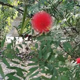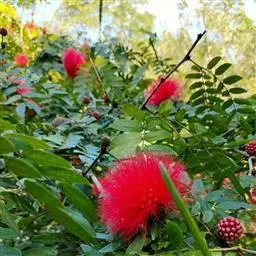 朱缨花,豆科朱缨花属的多年生木本植物,枝条扩展,小枝褐色;叶片呈卵状披针形;头状花序腋生,…