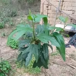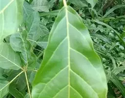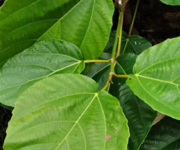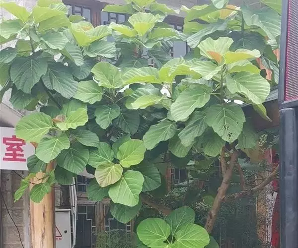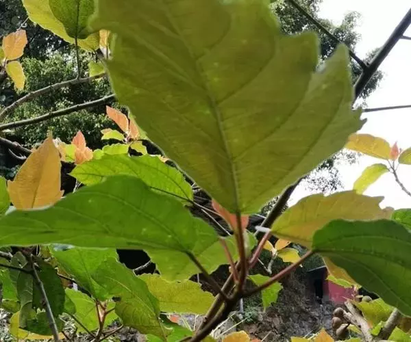 乔木或小乔木,高4-10米,胸径10-15厘米,榕冠广展。树皮灰褐色,粗糙,幼 枝被柔毛,直径10-15毫米,红褐色,中空。叶互生,厚纸质,广卵状心形,长15-55 厘米,宽15-27厘米,先端钝,具短尖,基部心形,稀圆形,边缘具整齐细锯齿,表面 无毛,仅于中脉及侧脉有微柔毛,背面多被开展短柔毛,基生侧脉5-7条,侧脉每边3- 4条,表面微下凹或平坦,背面突起;叶柄长5-8厘米,粗壮;托叶三角状卵形,长-1.5 2厘米,紫红色,外面被短柔毛。