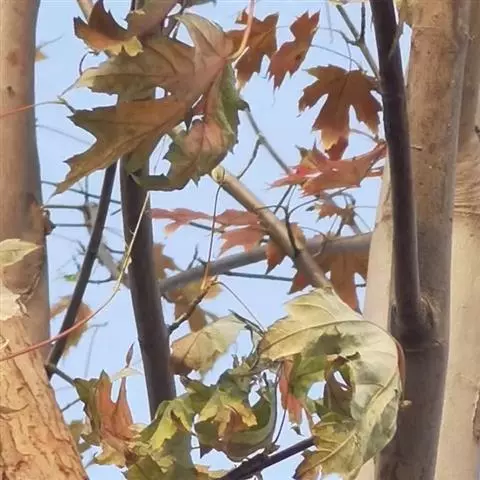 血皮槭树皮色彩奇特,观赏价值极高。叶变色于10、11月,从黄色、橘黄色至红色。落叶晚,是槭树类中最优秀的树种之一,常被作为庭园主景树。